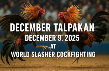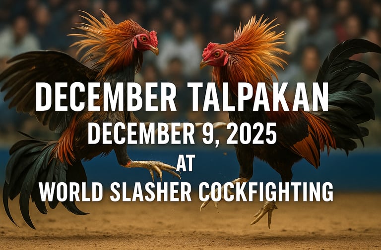 The Talpakan at WORLD SLASHER COCKFIGHTING is a pinnacle event that draws breeders, fans, and enthusiasts from across the nation. Each match carries the weight of prestige, honor, and tradition—making December 9 one of the most watched and celebrated dates in the sabong calendar.